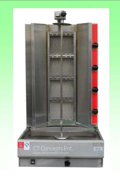 Shawarma is an Arab sandwich-like wrap of shaved lamb, goat, chicken, turkey, beef or a mixture thereof. The meat is placed on a SHAWARMA COOKER and may be grilled for as long as a day.